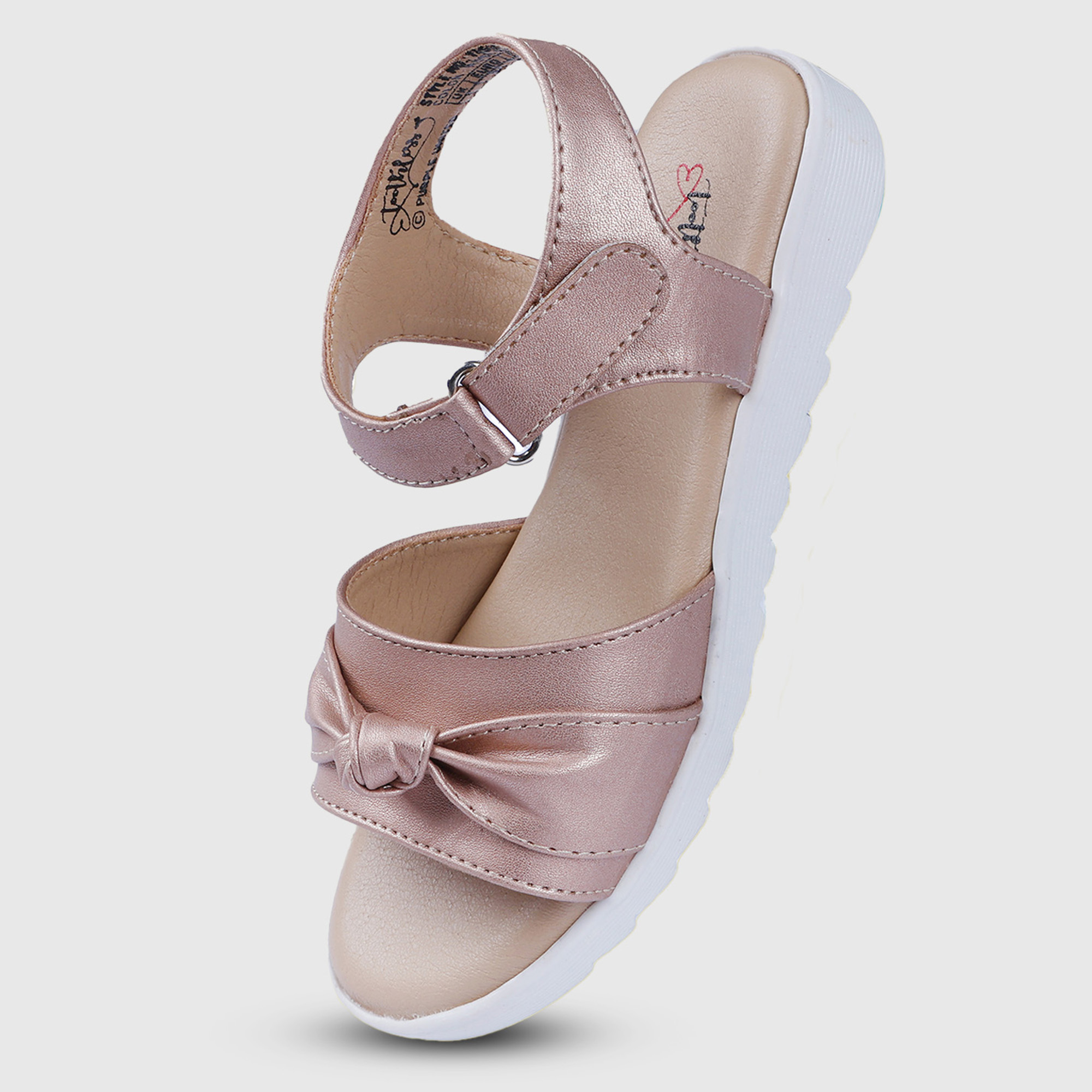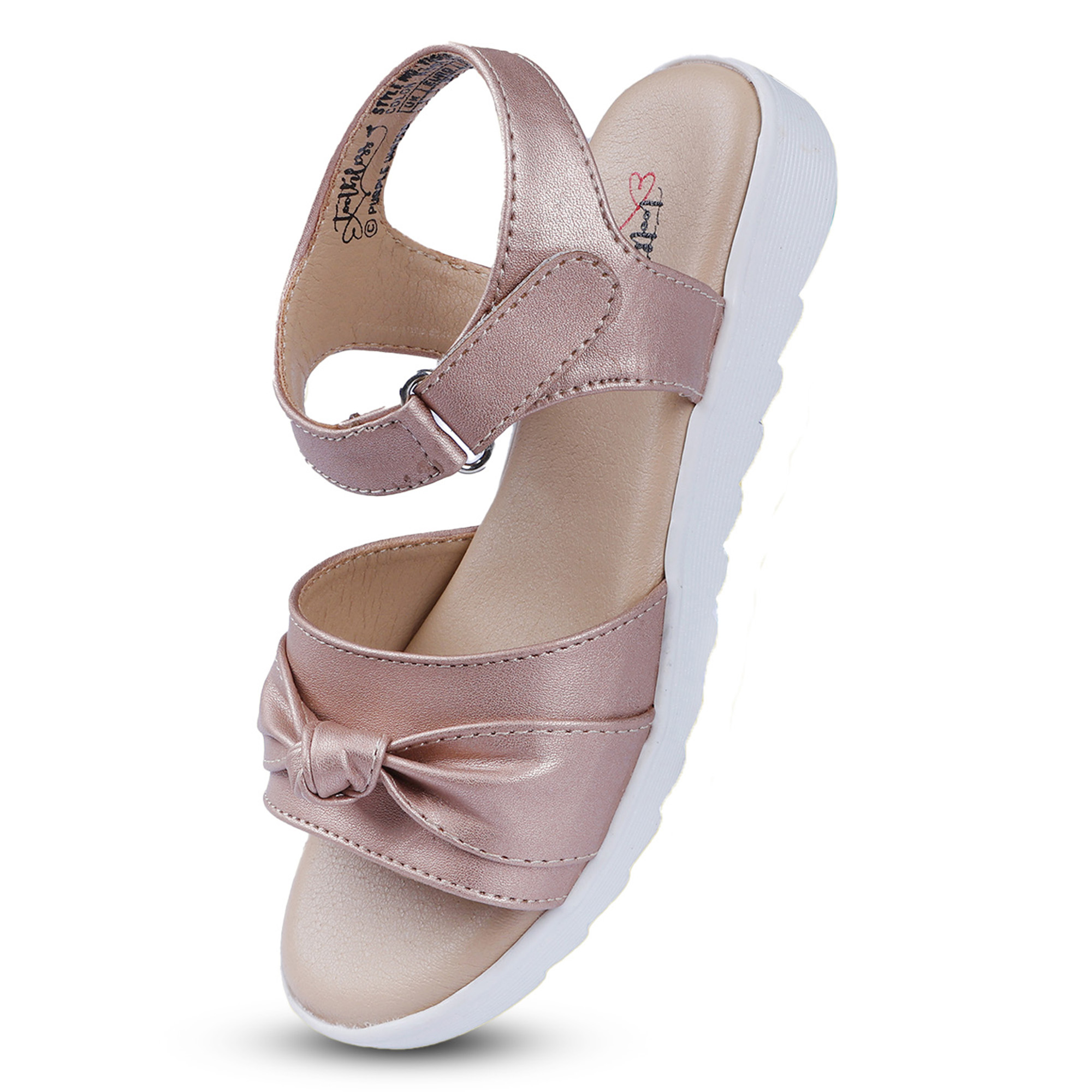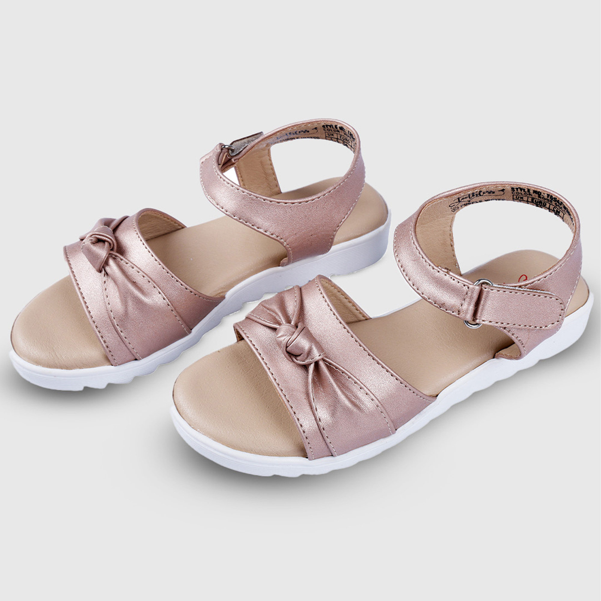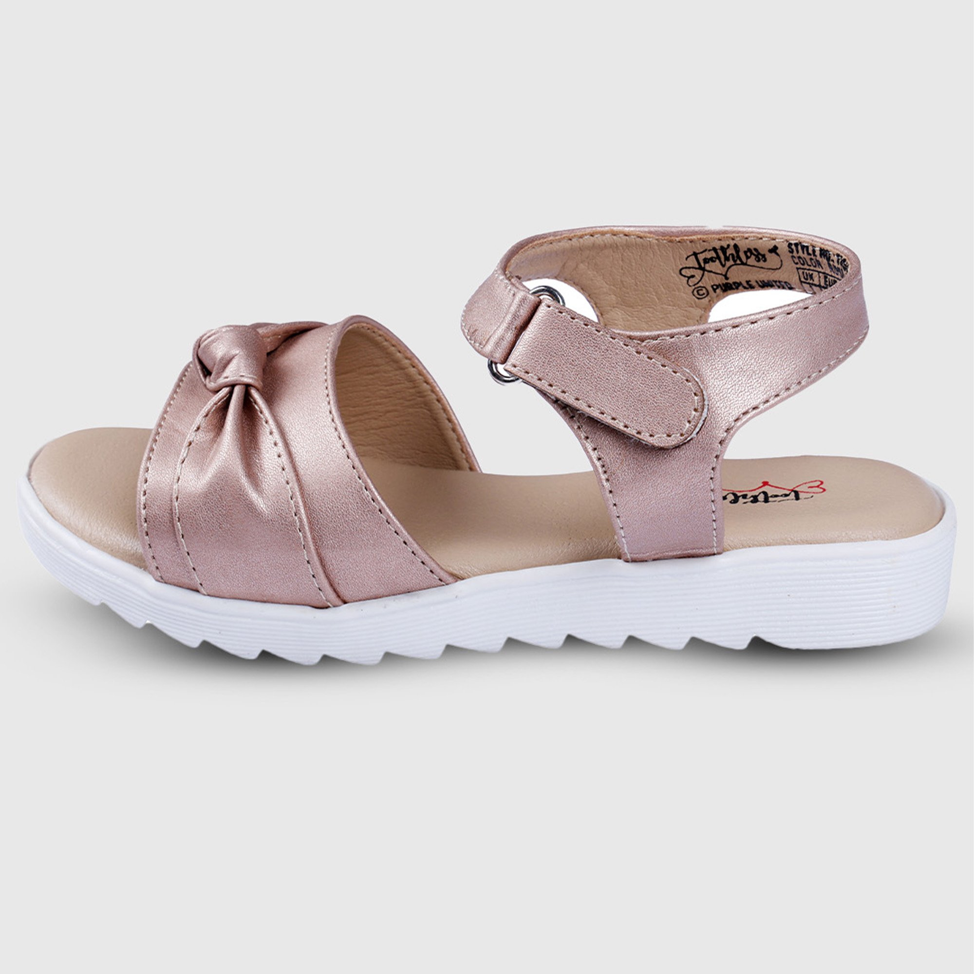 These girls rose gold sandals blend soft comfort with a subtle festive shine. Designed with gently padded straps and a stylish knot detail, they offer a secure fit while keeping little feet comfortabl...