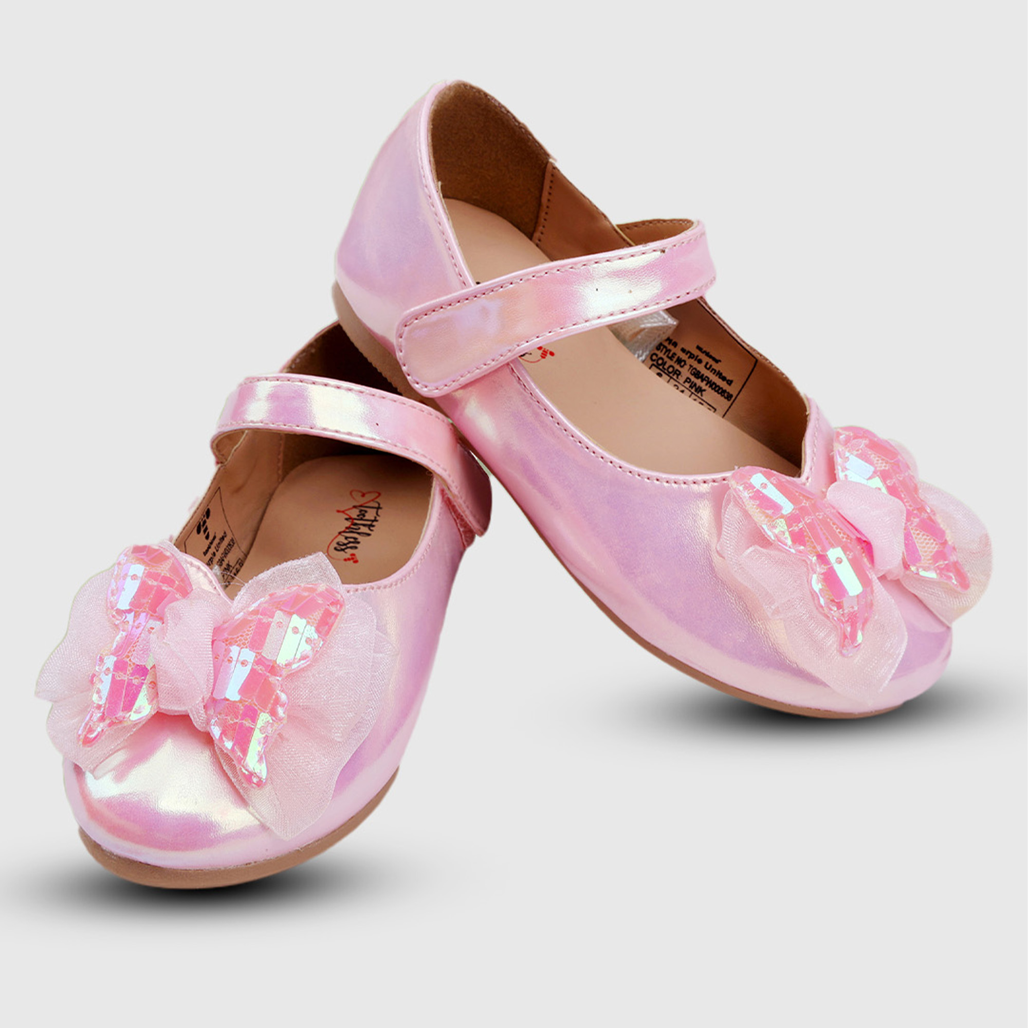 These Girls Ballerinas bring together sparkle, and all-day comfort which is perfect for parties, outings, and special dress-up moments.The front is beautifully adorned with a layered bow featuring sof...