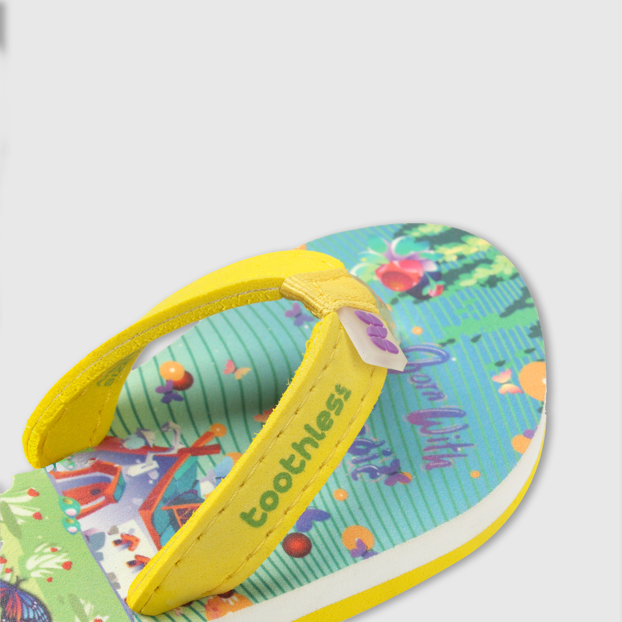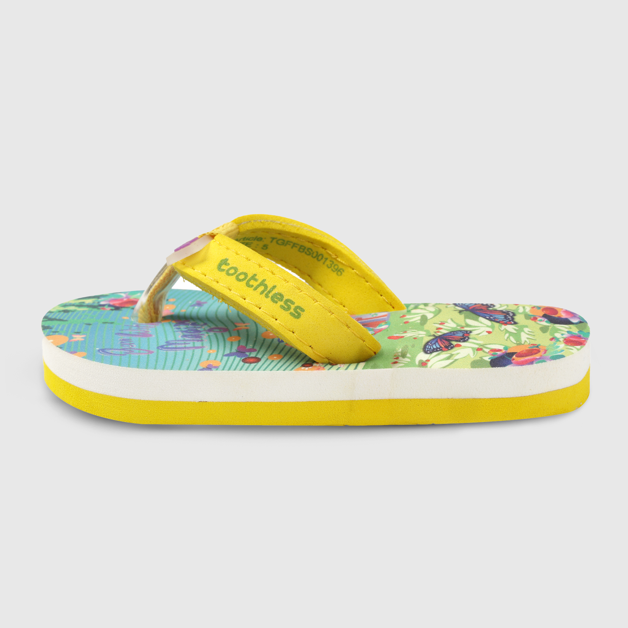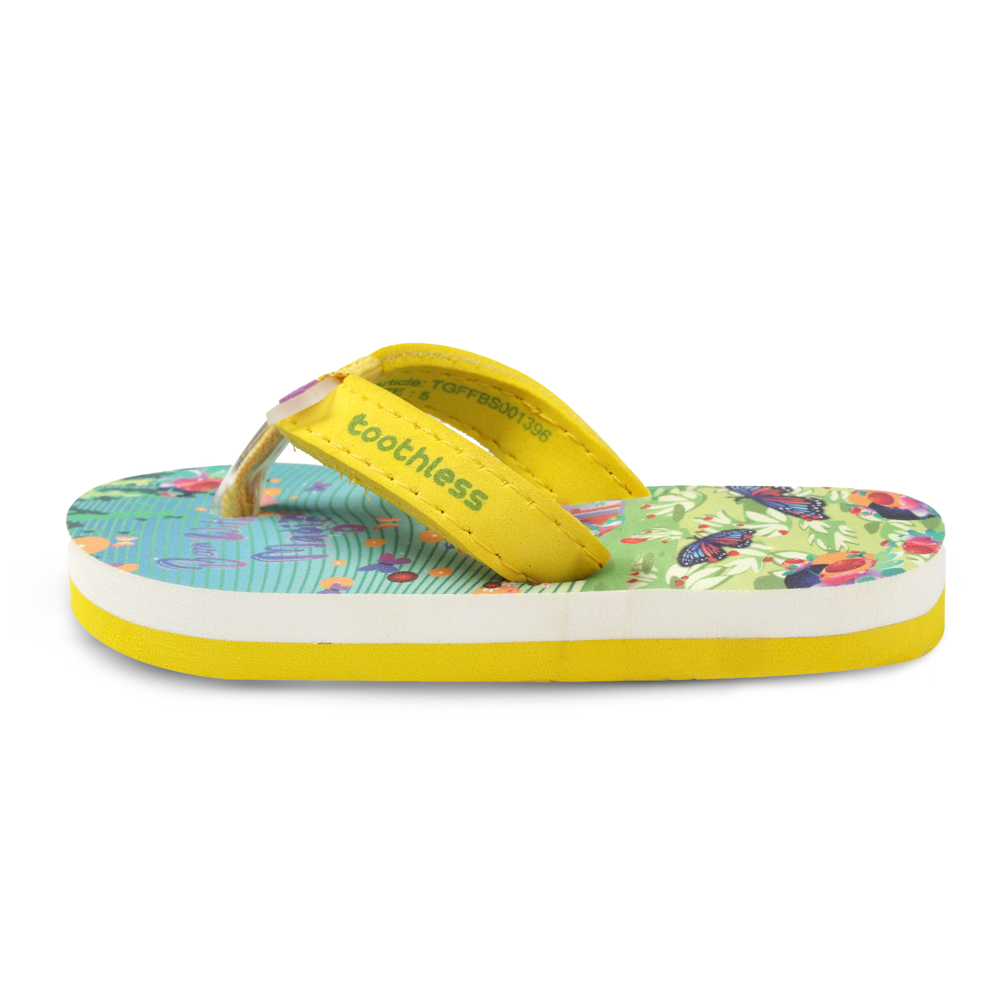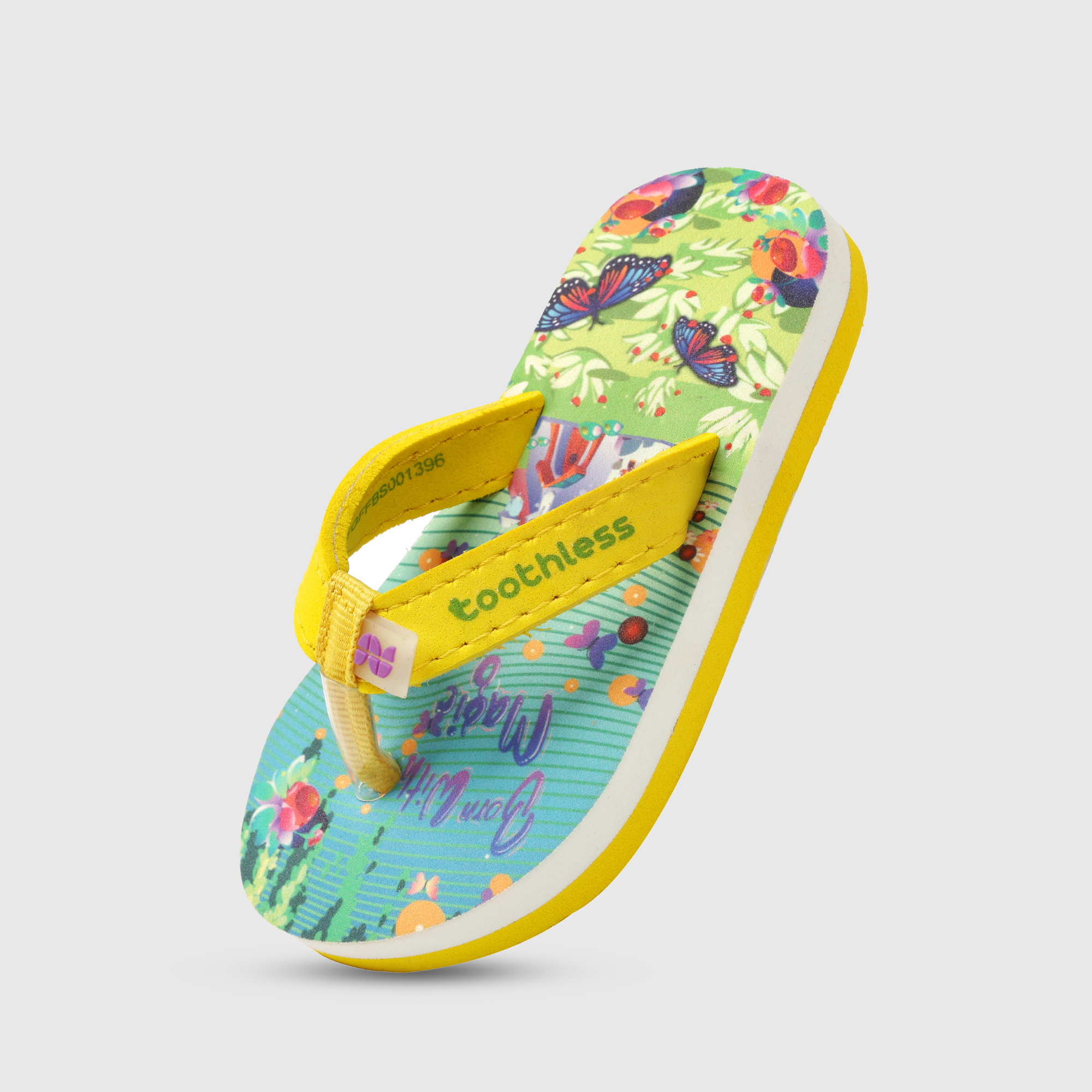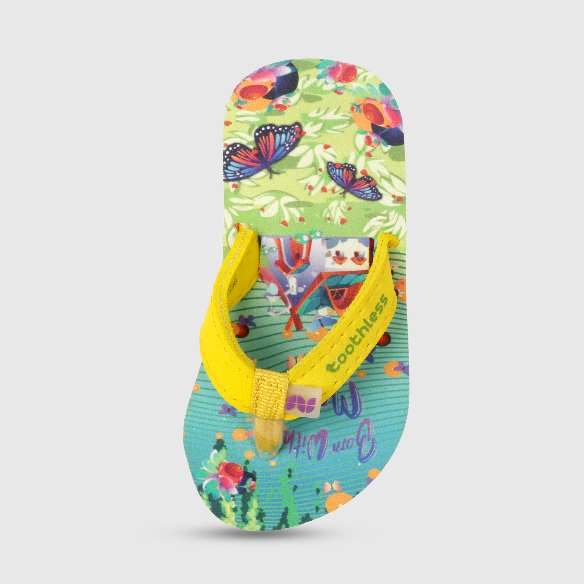 These Girls Flip Flops bring a cheerful burst of colour with their vibrant butterfly and garden-inspired print. Designed with a cushioned footbed and a lightweight EVA sole, these Girls Slippers offer...
