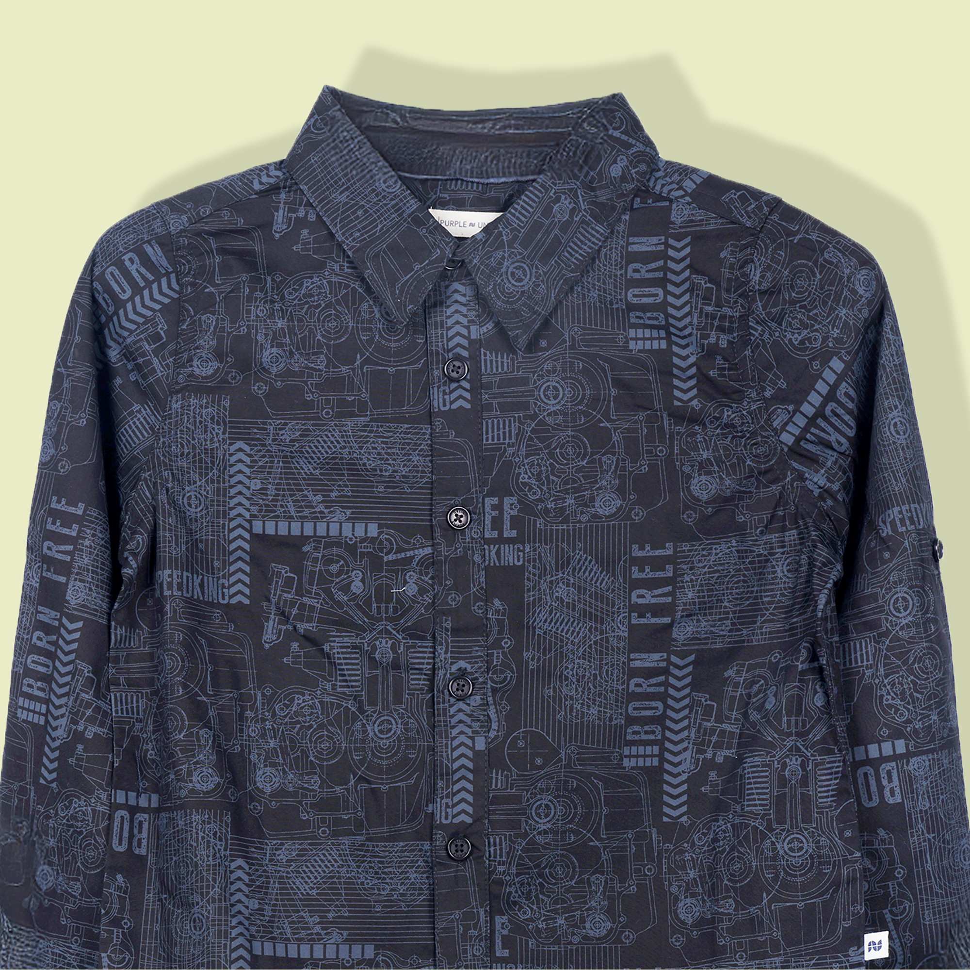 This boys black shirt is made from lightweight poplin fabric, offering a smooth feel and breathable comfort for all-day wear. Designed with an all-over subtle graphic print, it brings a modern edge to...