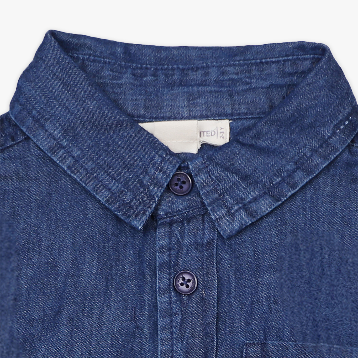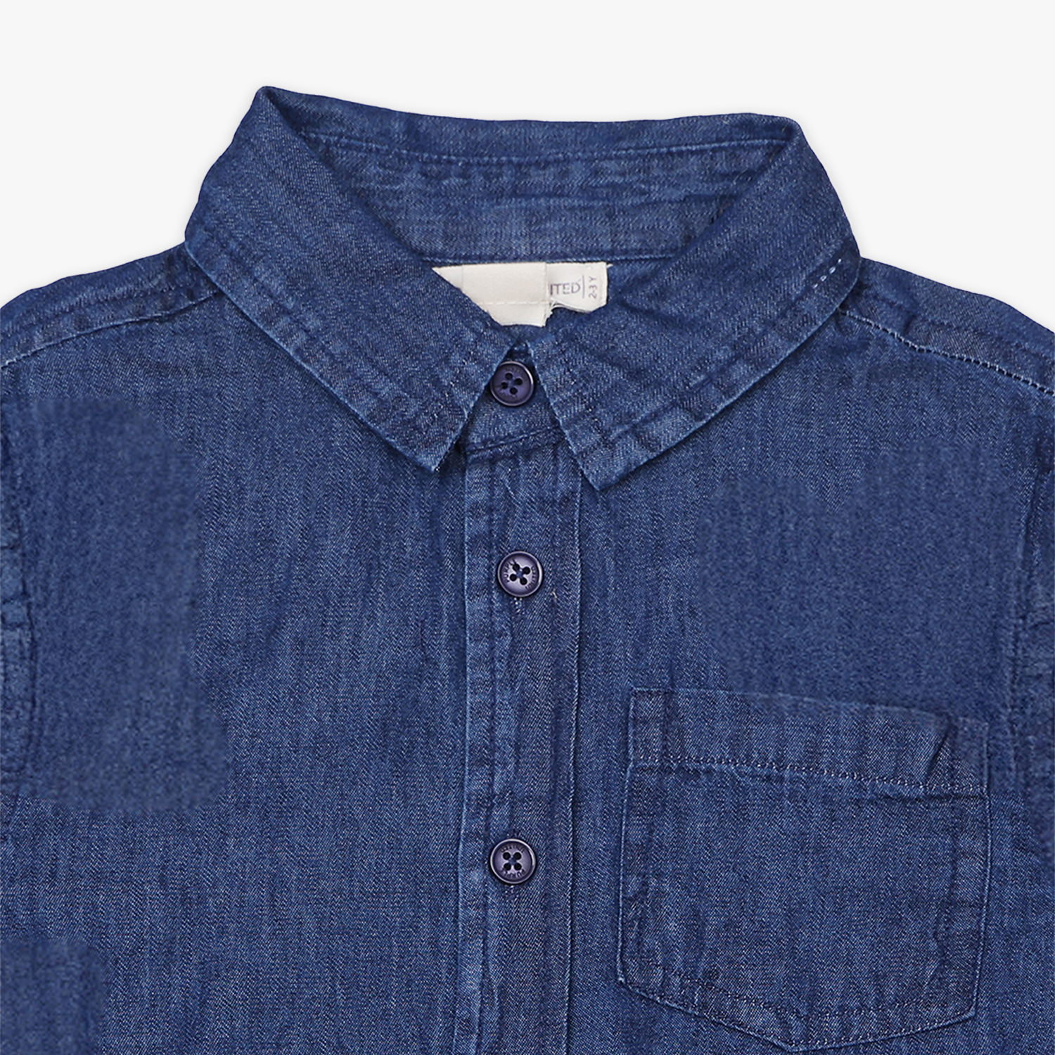 This boys blue denim shirt is a versatile wardrobe essential, designed for everyday comfort with a smart-casual edge. Made from breathable denim fabric, it offers a soft feel while maintaining a neat, structured look. Finished with a classic collar, button-down front, and short sleeves, this shirt is perfect for playtime, outings, or casual family occasions.