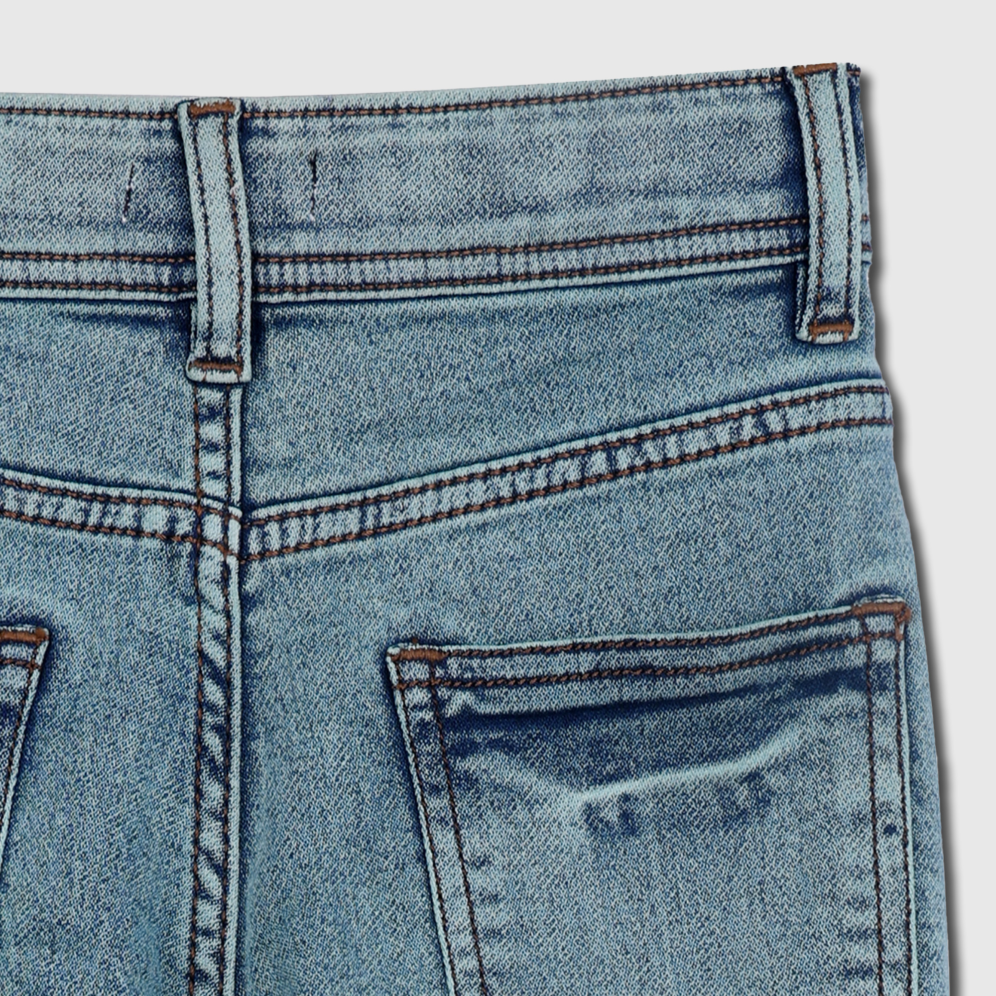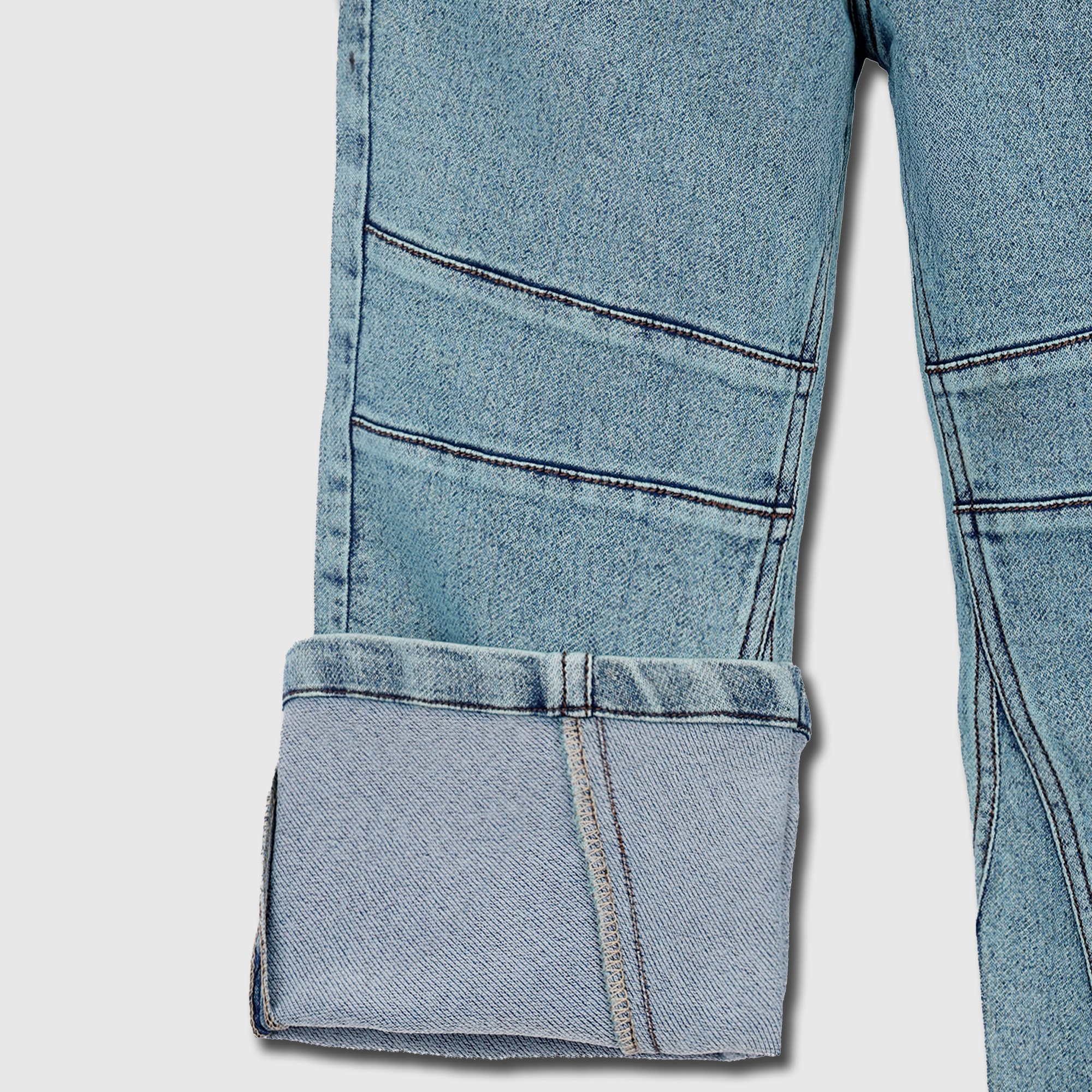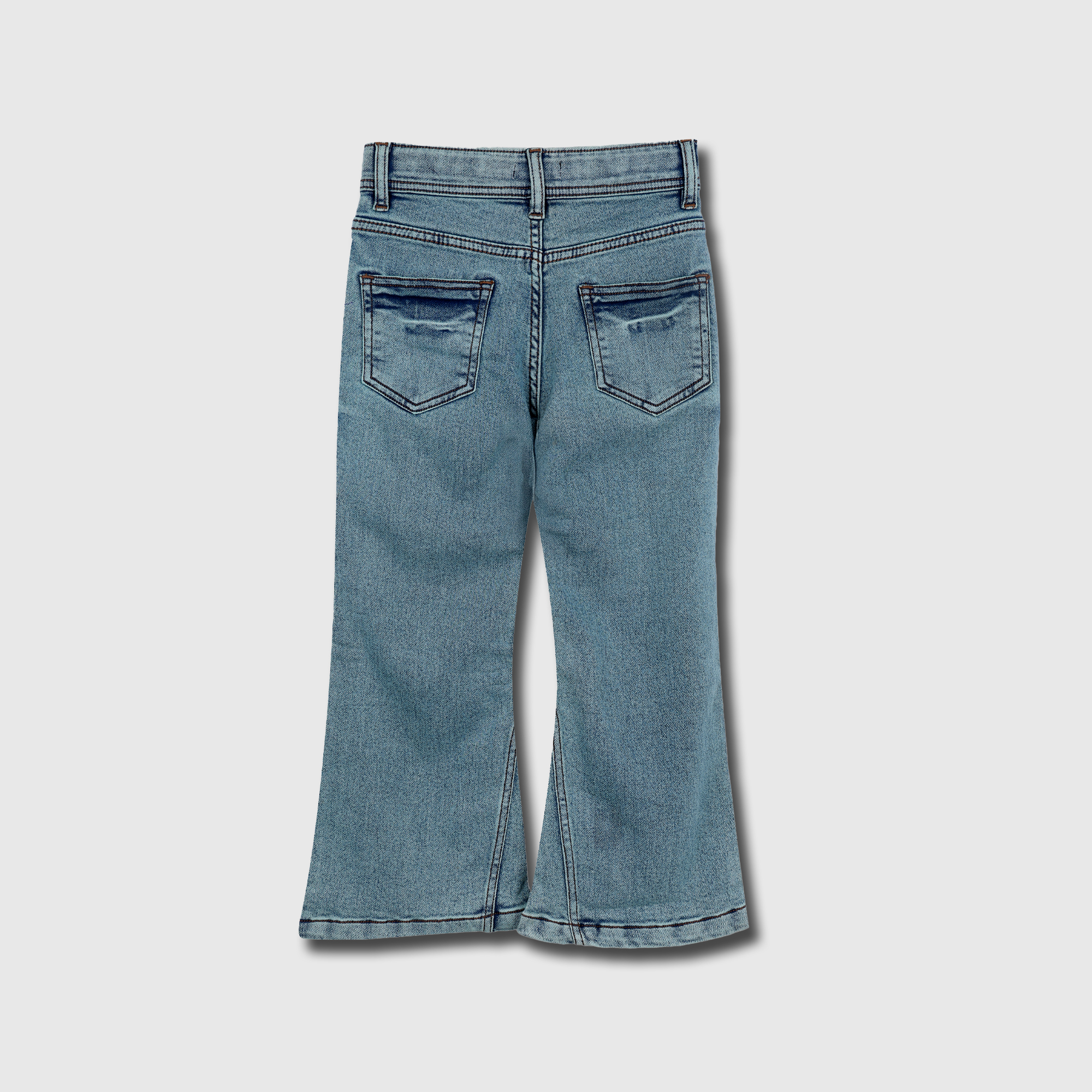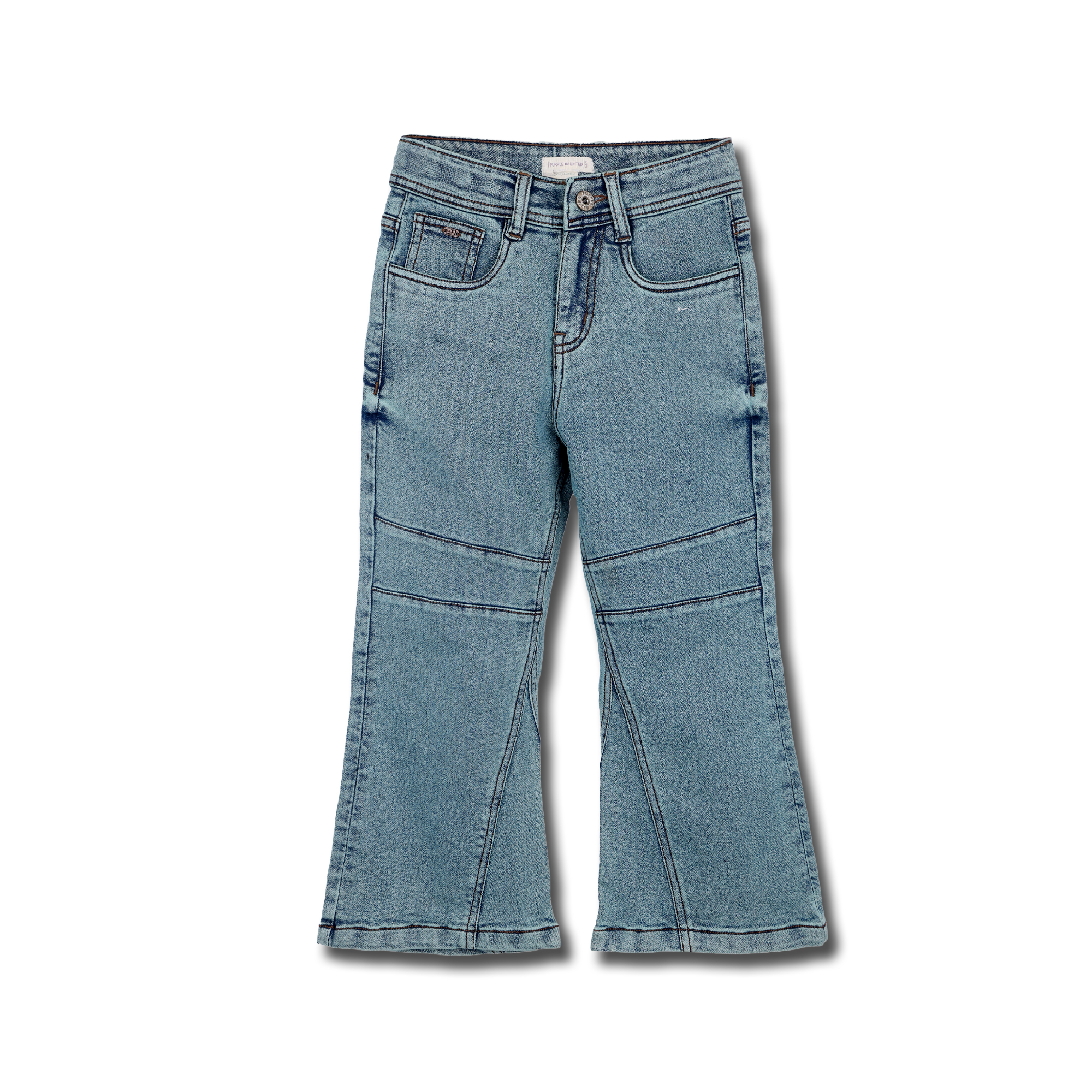 These girls’ light blue denim jeans blend comfort with a trendy flared silhouette, making them a stylish addition to everyday outfits. Crafted from soft, stretchable denim, they feature panelled sti...