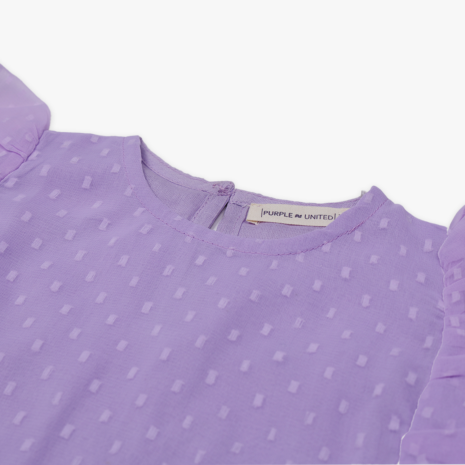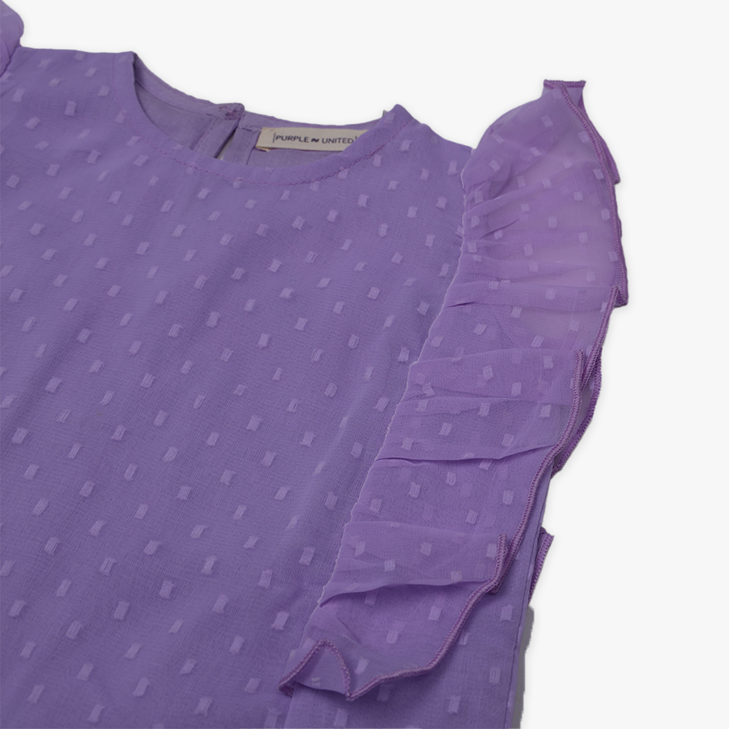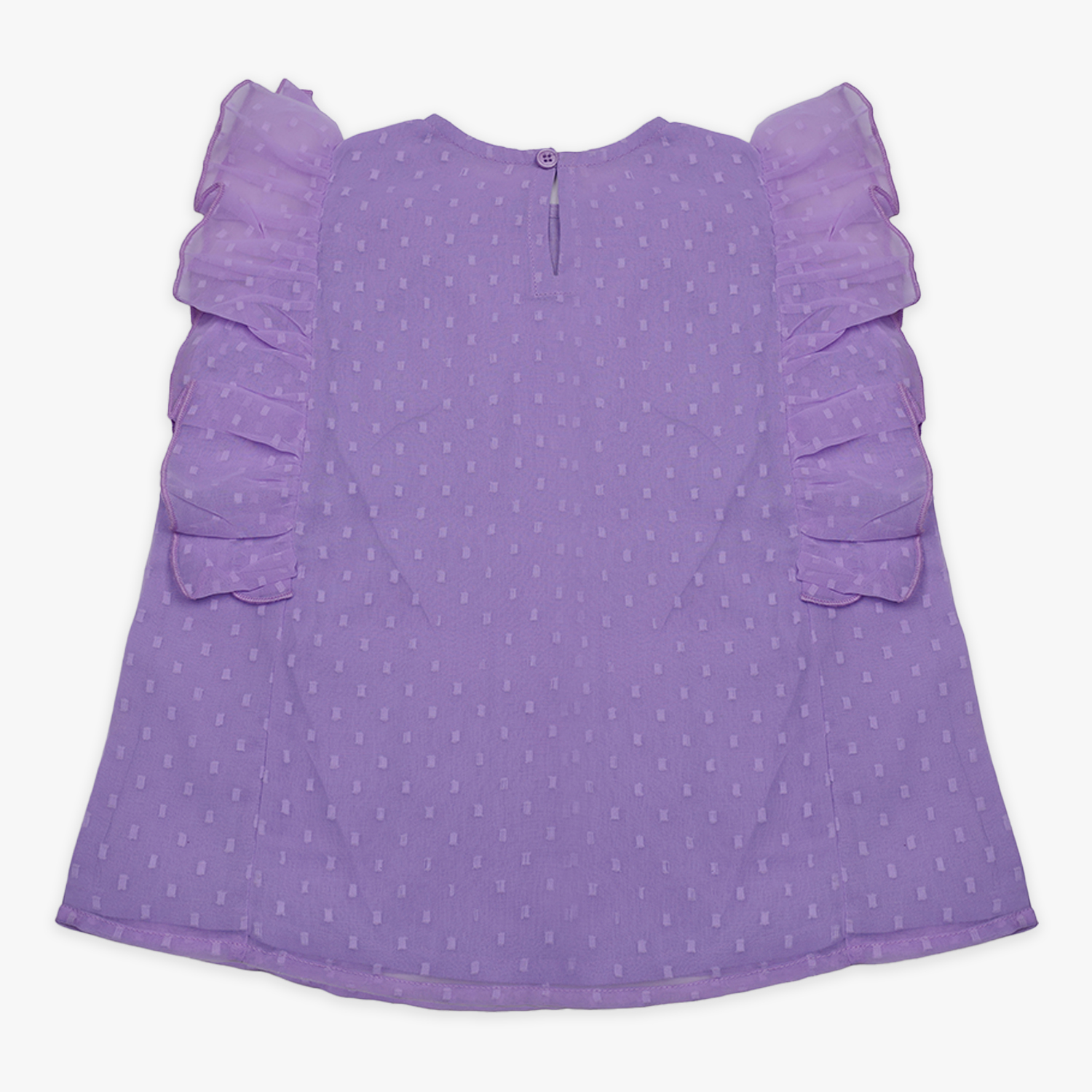 This girls top is made from soft and breathable cotton voile dobby fabric, offering a lightweight feel with delicate texture. Designed with elegant frill detailing finished with lace trim, it adds a g...