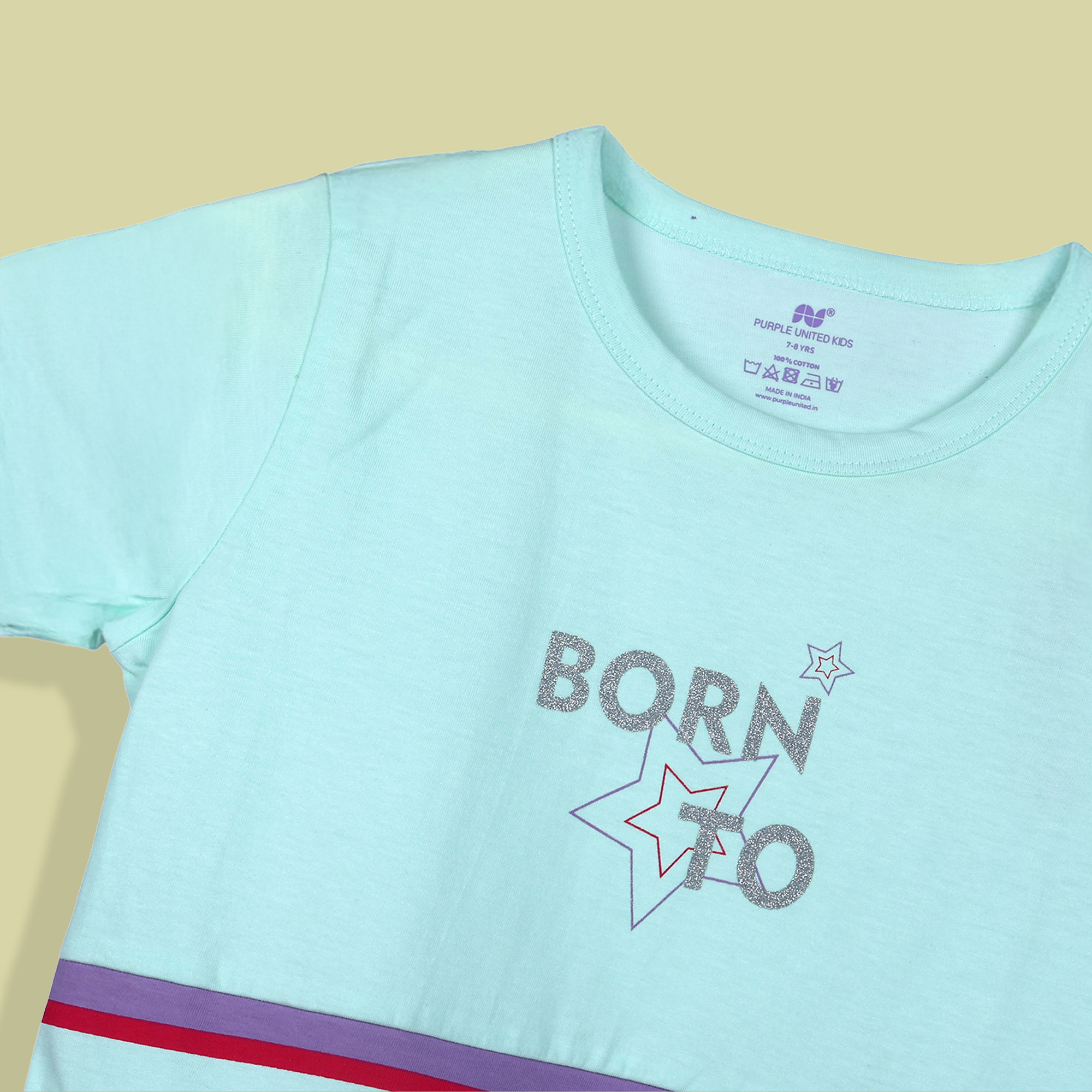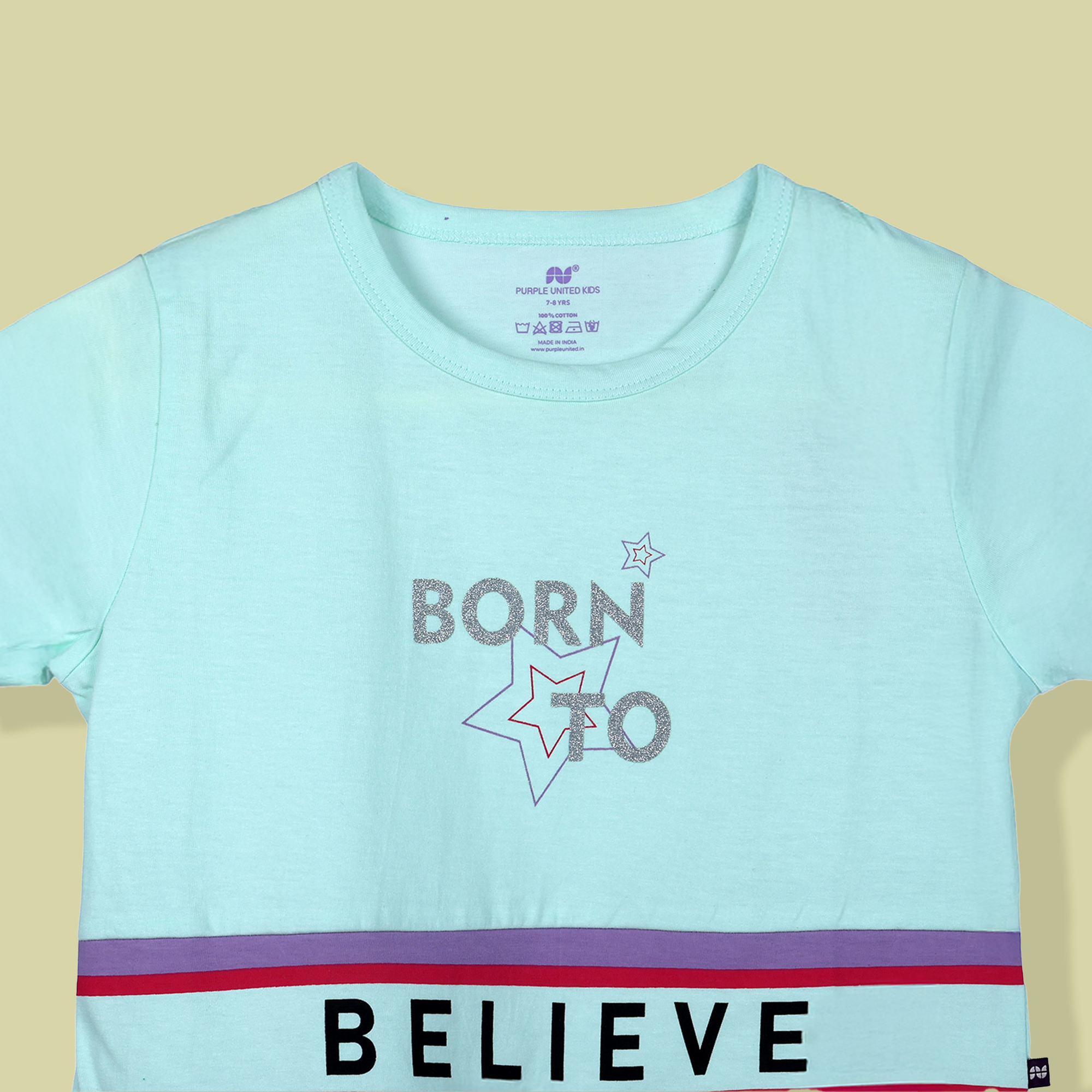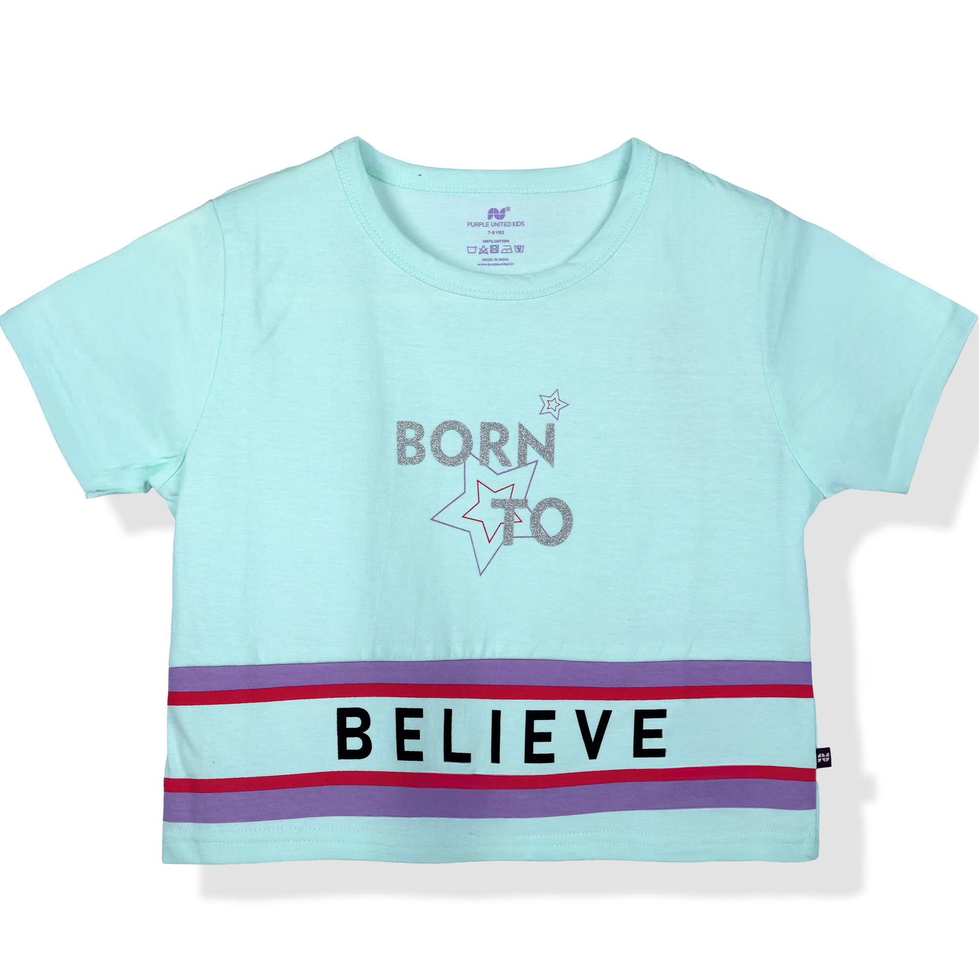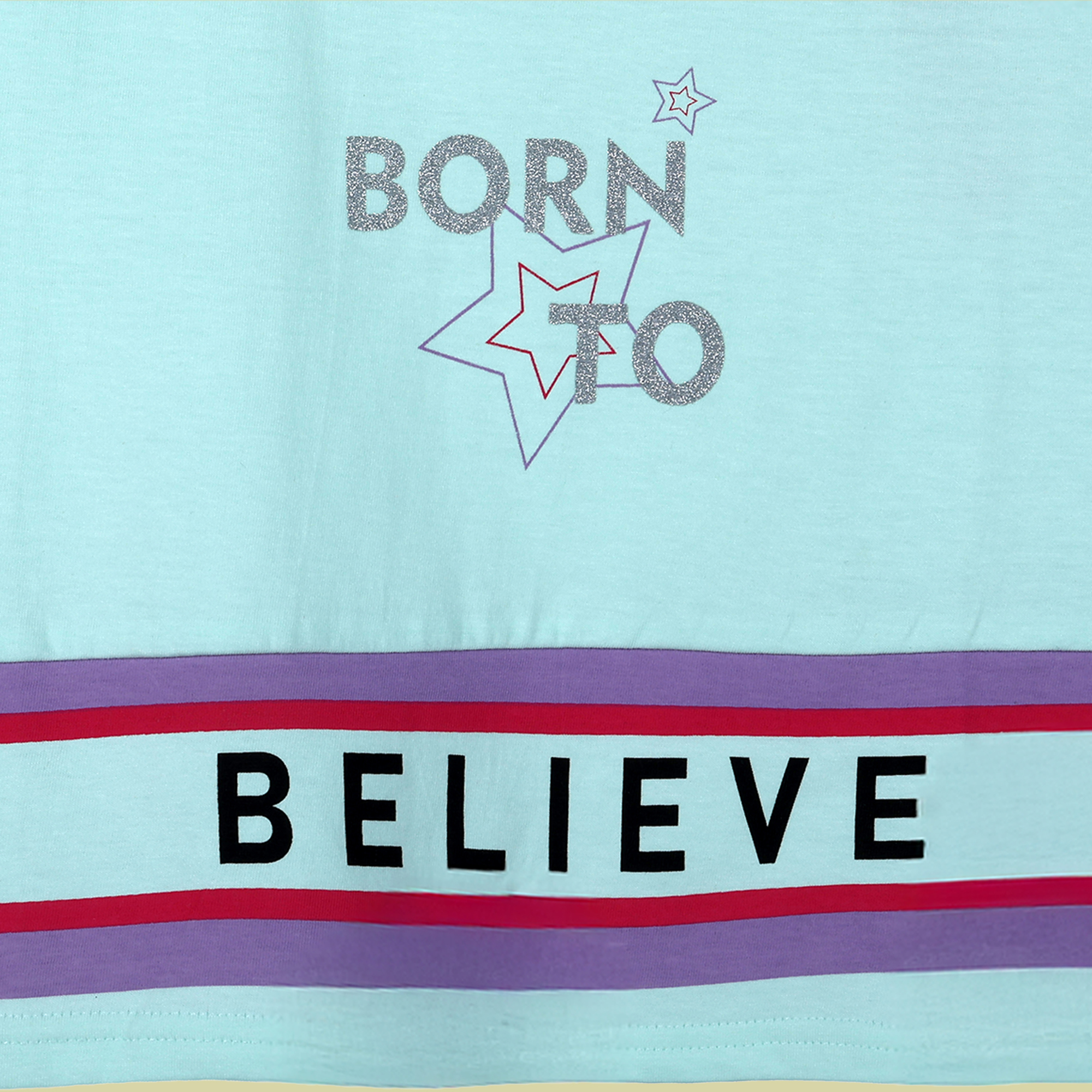 This girls T-shirt is made from soft single jersey fabric for a light, breathable, and comfortable feel. Designed with a classic round neckline and short sleeves, it features a cheerful “Born to Bel...